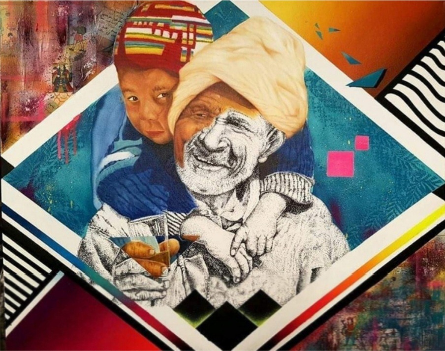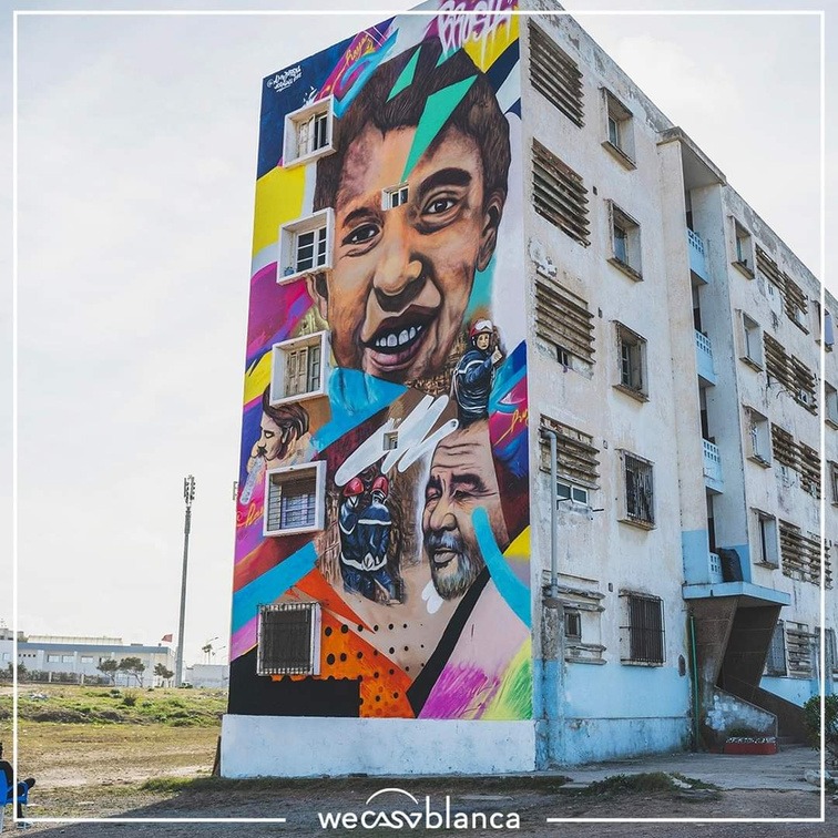 À travers ses fresques murales, il transforme les espaces urbains en œuvres vivantes inspirées de la culture marocaine, racontant des histoires à travers chaque détail.